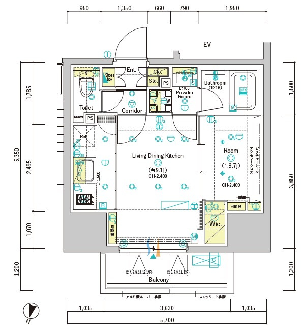LDK 9.1帖/洋室 3.7帖 - 向き